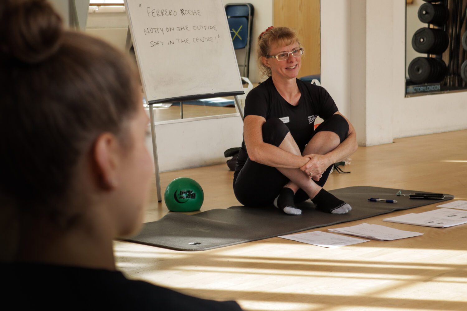When teaching Pilates to older adults you will need to have modifications to hand. The use of small equipment may help to aid body alignment, offer support and control or just to make the positioning a little more comfortable for the client. It is useful to have Dyna-bands, small balls, towels, cushions or thick Pilates mats available for use. You may also need to have some chairs available for those that cannot get up and down from the floor, and you would need a bank of alternatives available for those struggling.